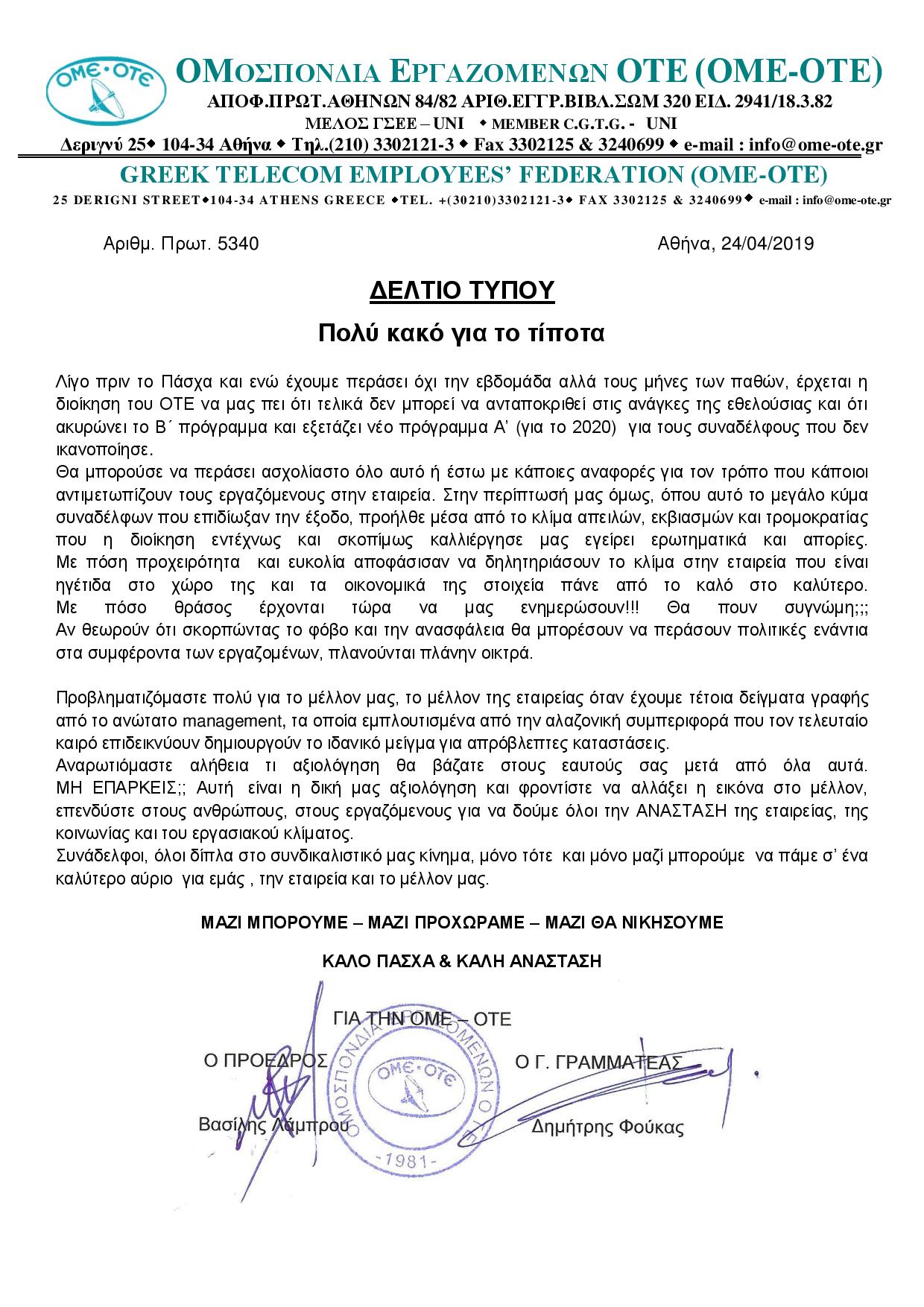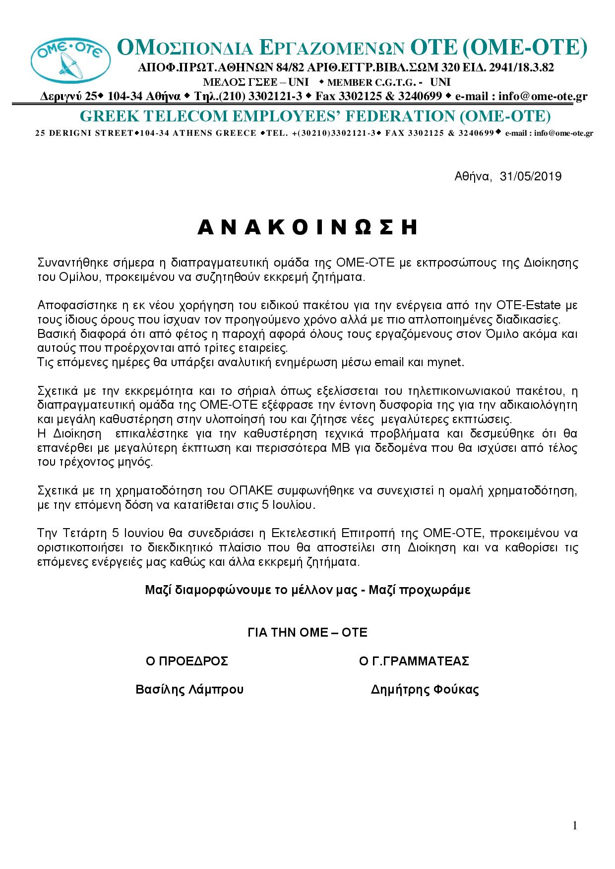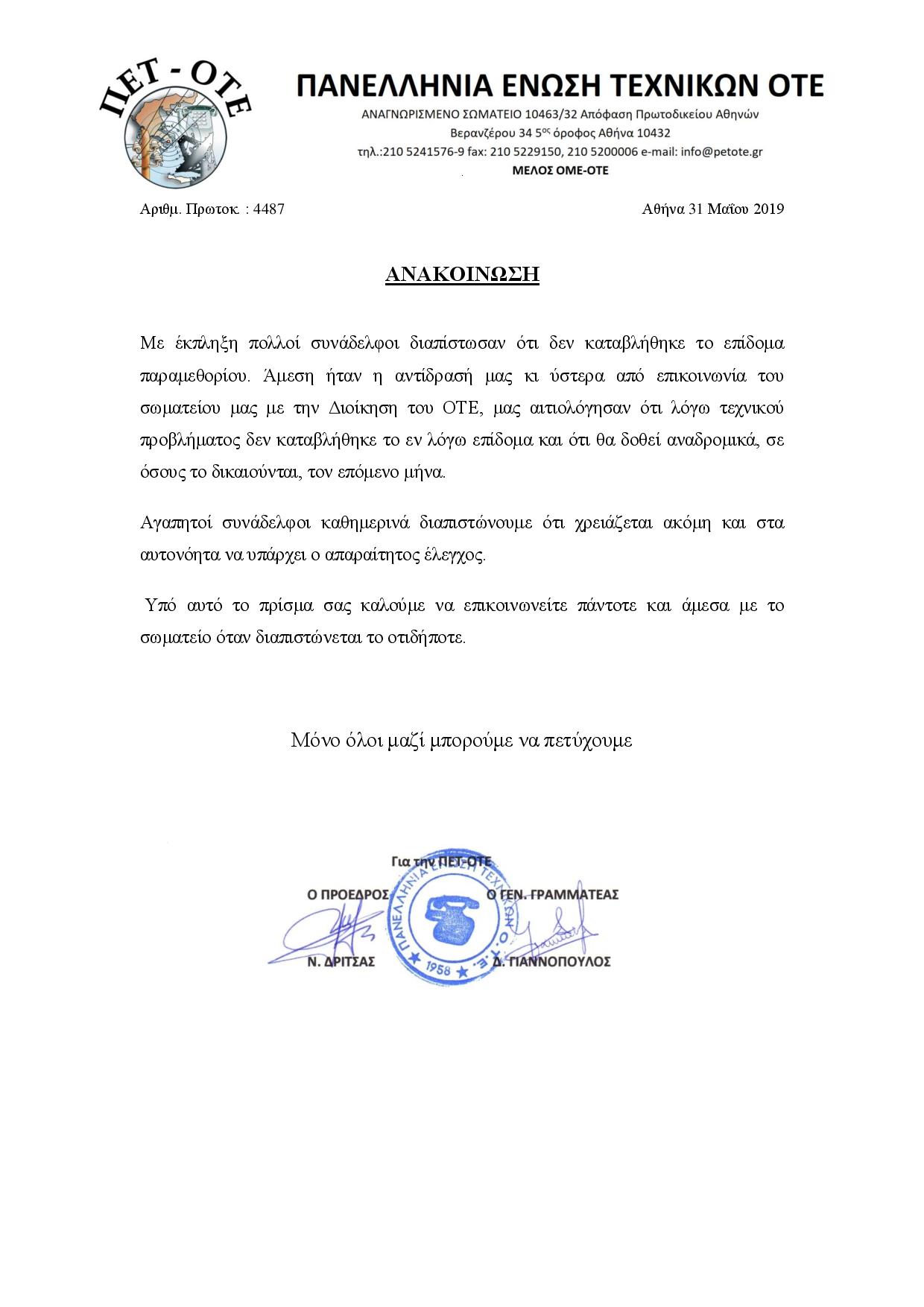 ΑΝΑΚΟΙΝΩΣΗ ΗΜ
