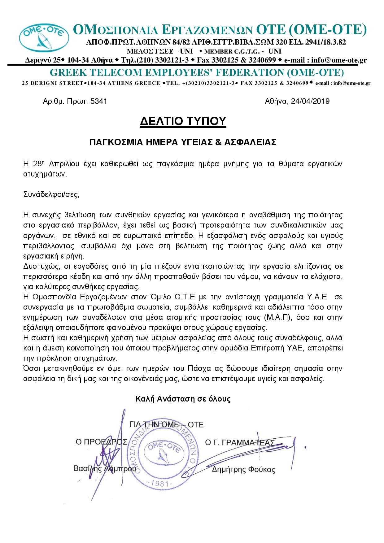 ΔΤ Παγκόσμια Ημέρα Υγείας και Ασφάλειας