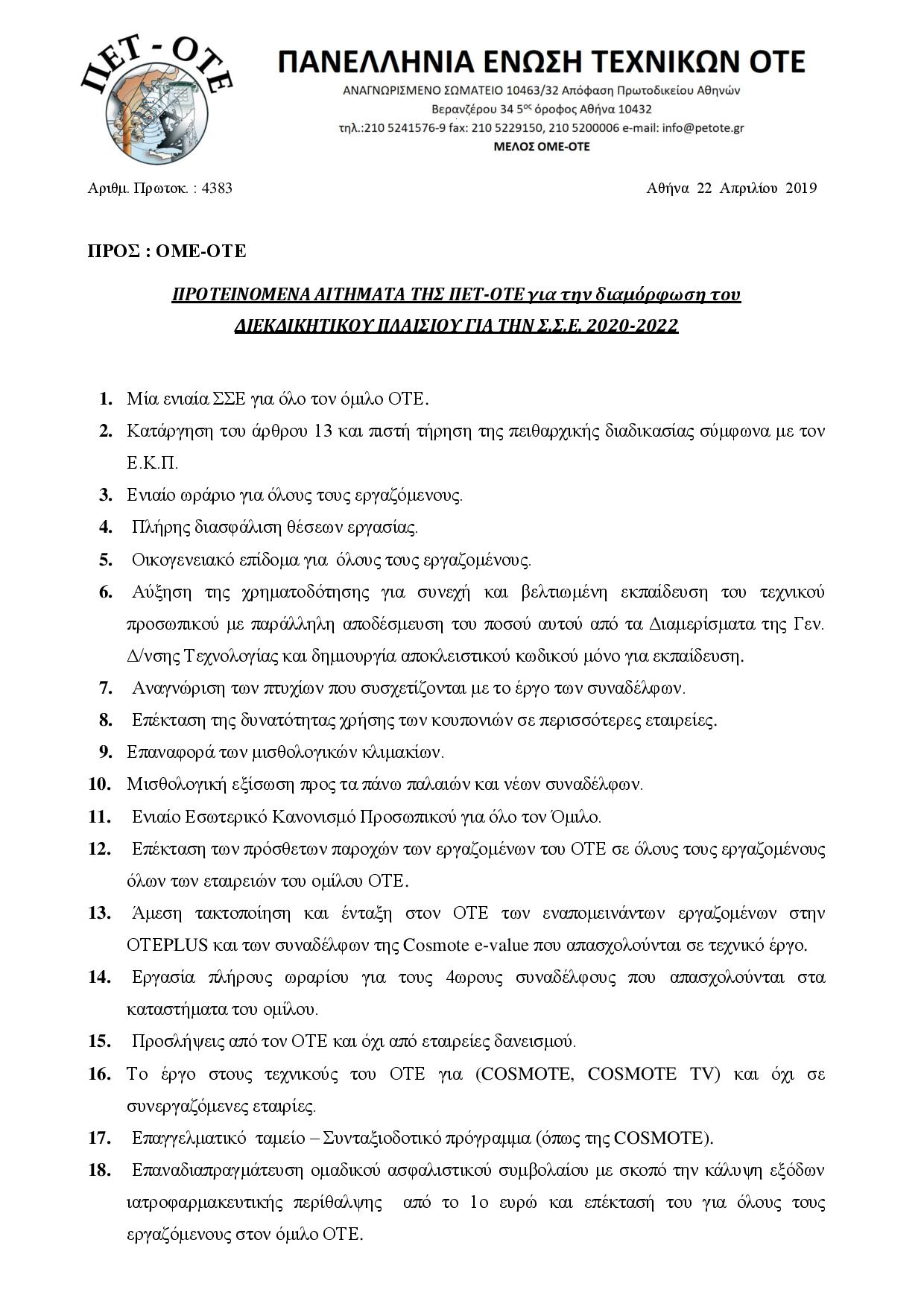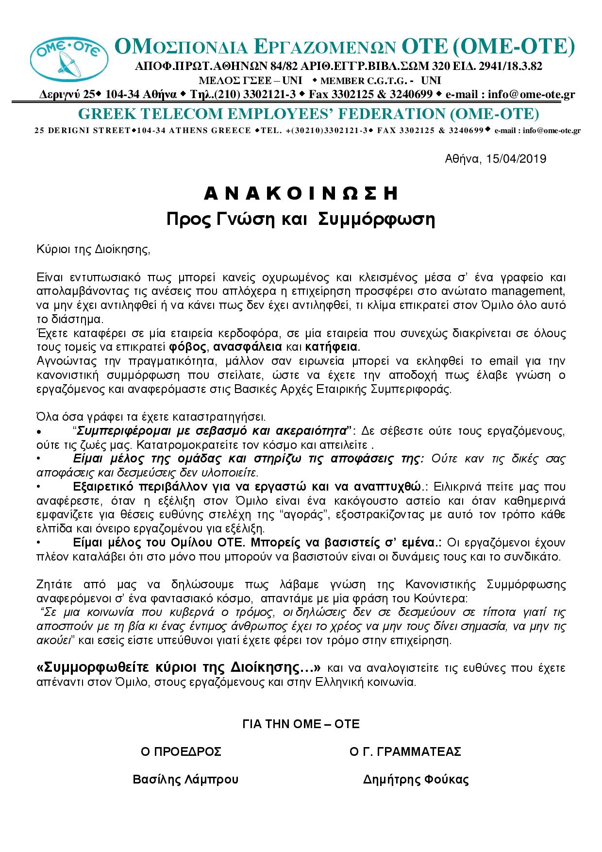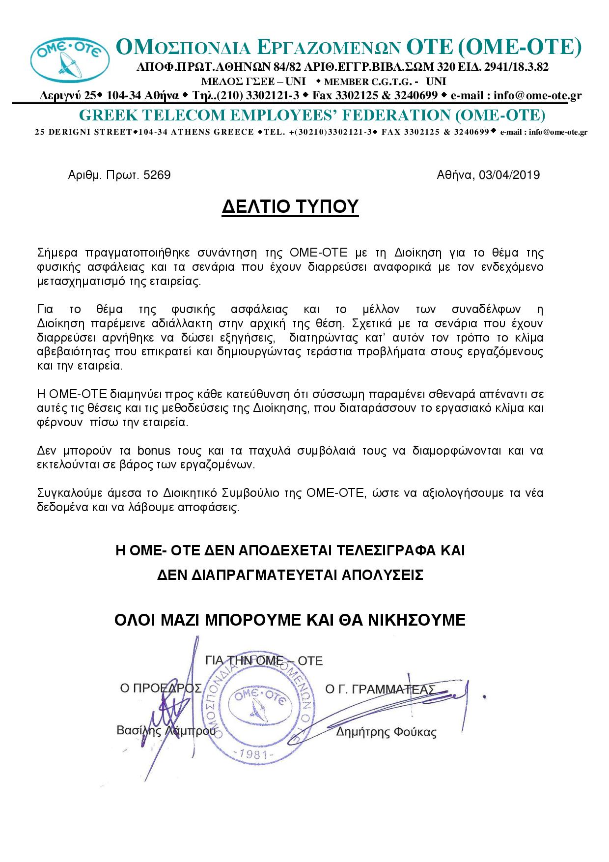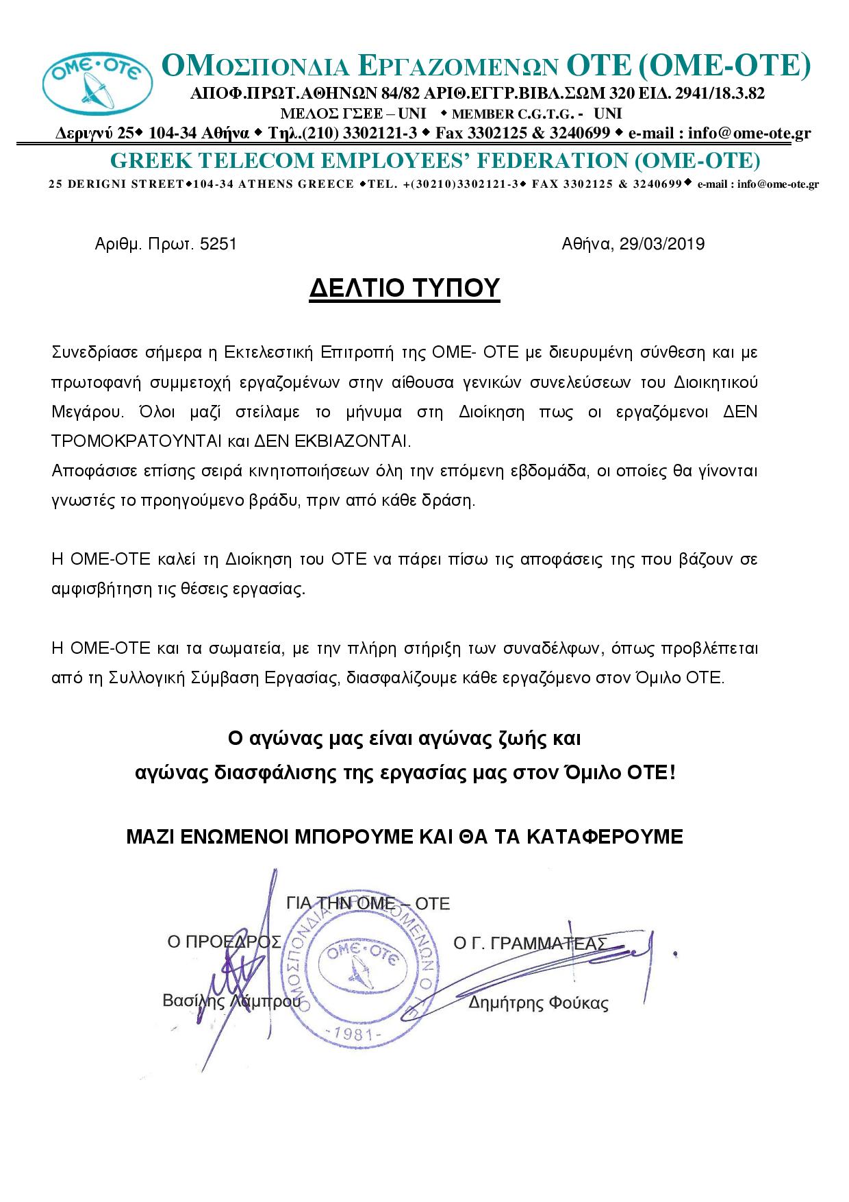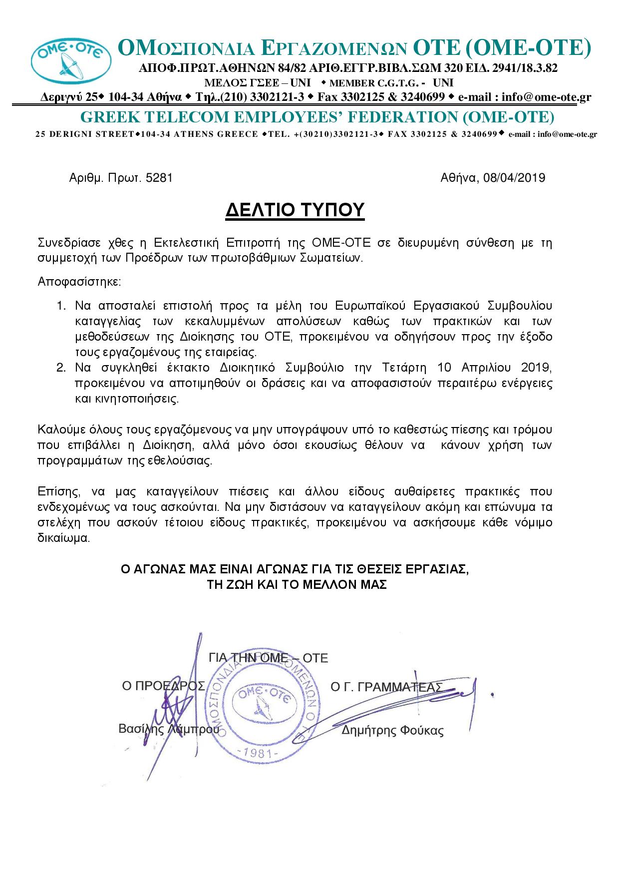 ΔΤ 8-4-19 Αποφάσεις Εκτελεστικής ΟΜΕ-ΟΤΕ