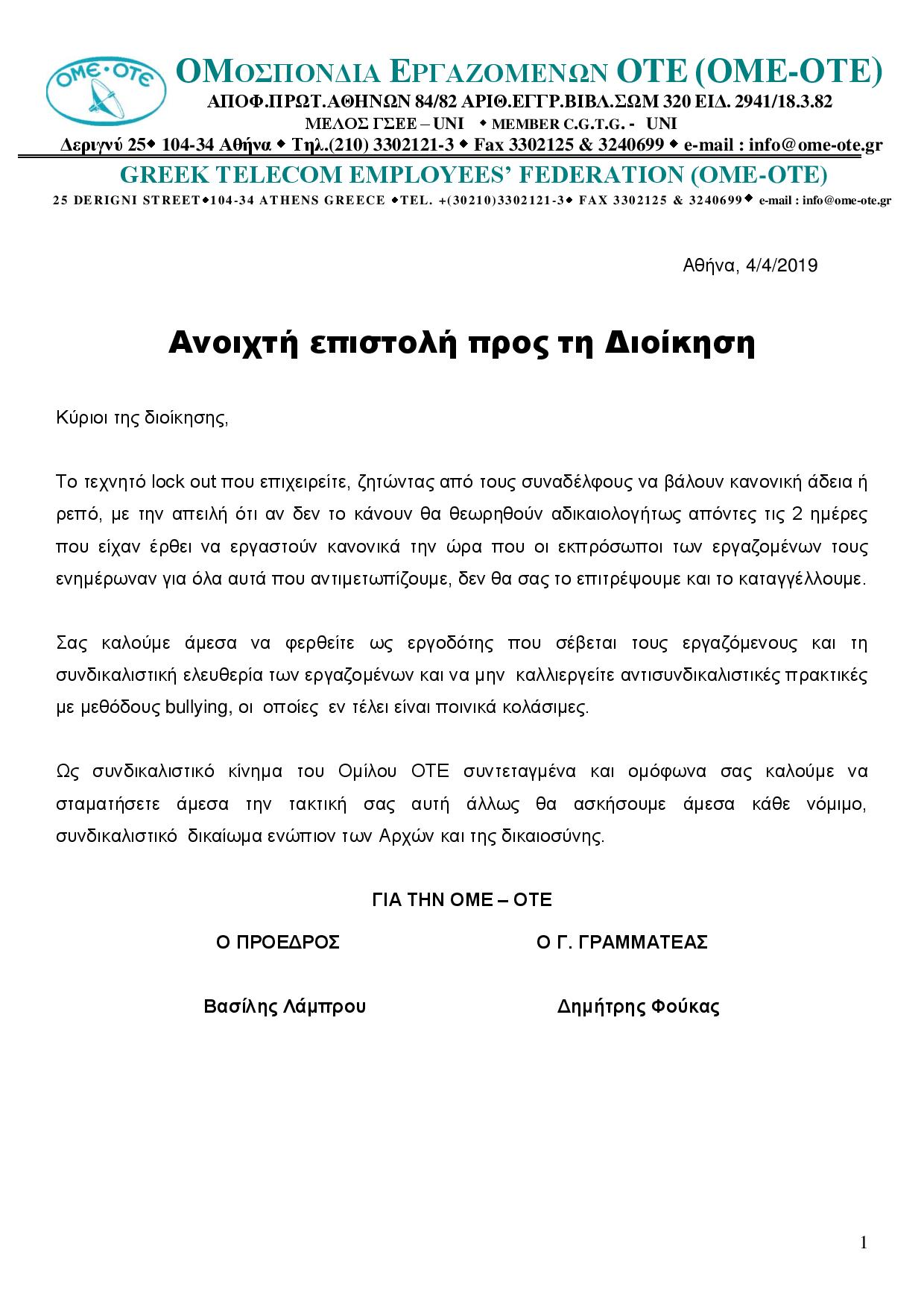 Ανοιχτή Επιστολή προς τη Διοίκηση - Τεχνητό lock out